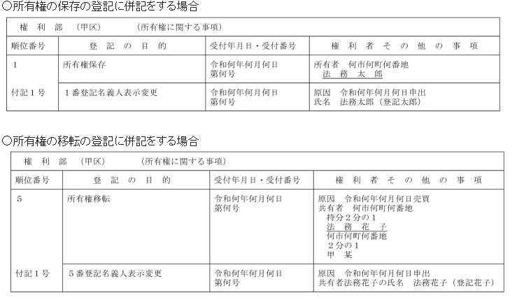 (1)登記申請に伴う旧氏併記の申出:新たに所有権移転登記等の申請に伴い旧氏の併記の申出をする場合